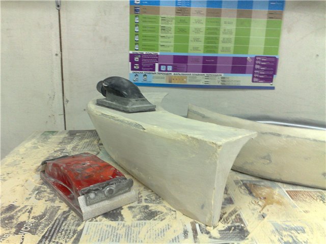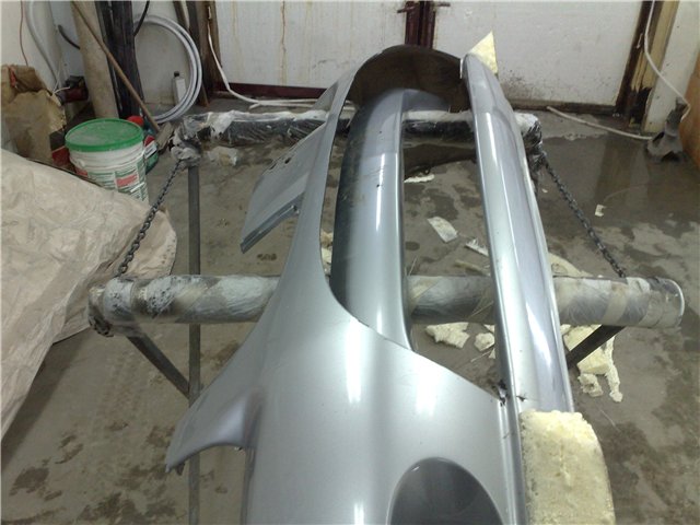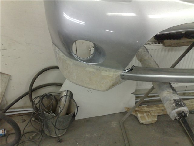 Location: Russia, Perm | Install the bumper on the base. Use construction foam and do fangs. Once the foam has dried, remove unnecessary. So i do coating of paper tape.