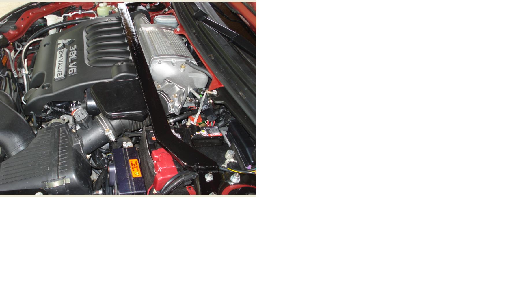 Well when you put bonnet scoops on a 380 the strut brace doesn't quite clear the sloping scoop bottoms, and with the torque of the motor the supercharger ocassionally banged on the TMR supplied strut brace.