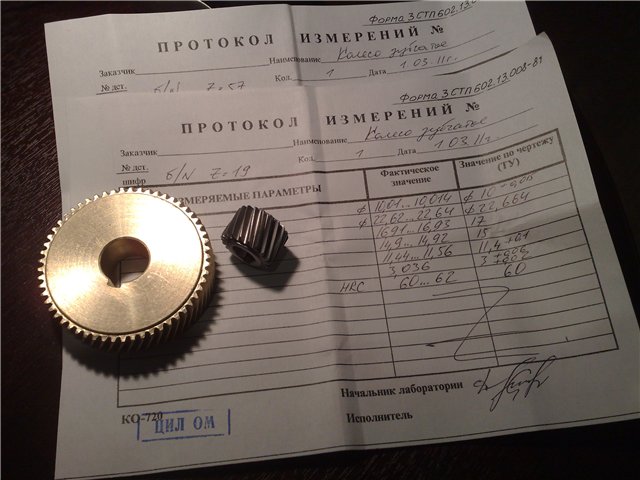 Development of drawings and calculations took 2 months. The first thing made gears. On a sheet of written dimensions, confirmation of quality, hardness Brunel (lower picture)