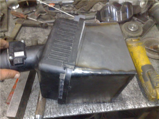 ![]() Frequent flyer Gold Posts: 286 ![]() ![]() ![]() ![]() ![]() ![]() Location: Russia, Perm | The program for the control of the turbo written. Now you need to make the final look and torque stand. However, not all so is simple. I don't like how that is done at the moment. First of all you should install the intercooler. This will reduce the temperature of the air and increase density. I bought a cooler, but it is still on the way to me. The second task, to make the intake tract before the turbocharger. The thing is that I measured the temperature of the air in the stock air filter and when Dryflow filter. Result: stock 56C, dryflow 71C. This is an occasion to think, those who establish themselves dryflow filter. So I decided to make housing for the stock filter. This is what I want today to tell. The stock filter housing consists of two parts. I need to rotate the housing by 90 degrees. I left that part in which the MAF sensor. The second part is to be made. | ||